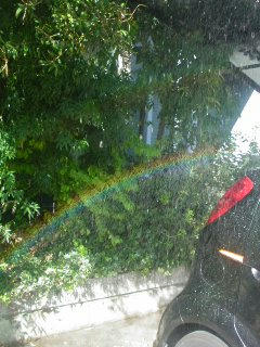 水やりやってたら綺麗に虹がでたのでぱしゃり